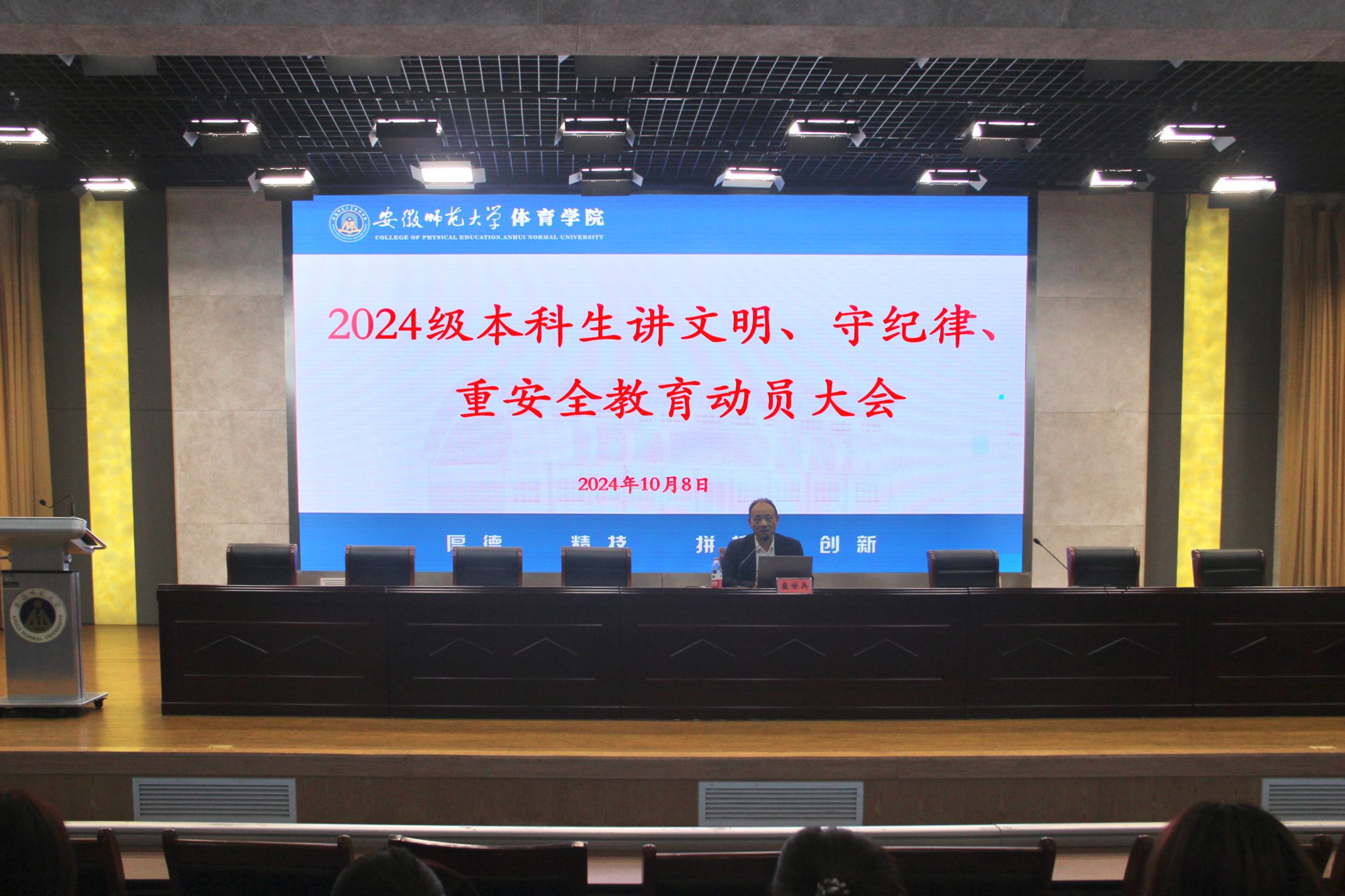 本网讯(英国正版365官方网站)10月8日晚上,英国正版365官方网站在理科实训大楼报告厅举行2024级新生开学典礼暨师生见面会。学院领导班子全体成员、院学位授权点负责人代表、专业负责人、教研室主任、院督导组代表、院中层管理人员代表、全体辅导员、2024级全体本科生和研究生参会。典礼由公司党委书记黄德春主持。