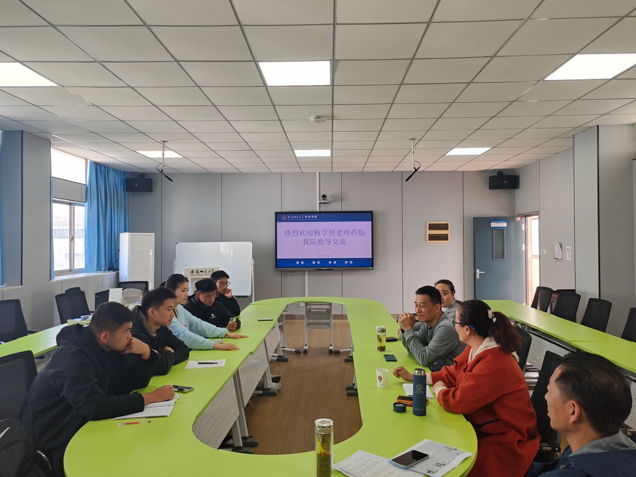 10月23日上午,2002届员工,宿州二中高级教师,宿州市首届人民满意教师,学科带头人,优秀青年教师梅学艳回到体院交流指导。英国正版365官方网站副经理岳建军,教师方敏、周坤、蒋莹、孙正、石旅、袁海强出席参加交流会,学院相关专业本科生、研究生现场观摩学习。