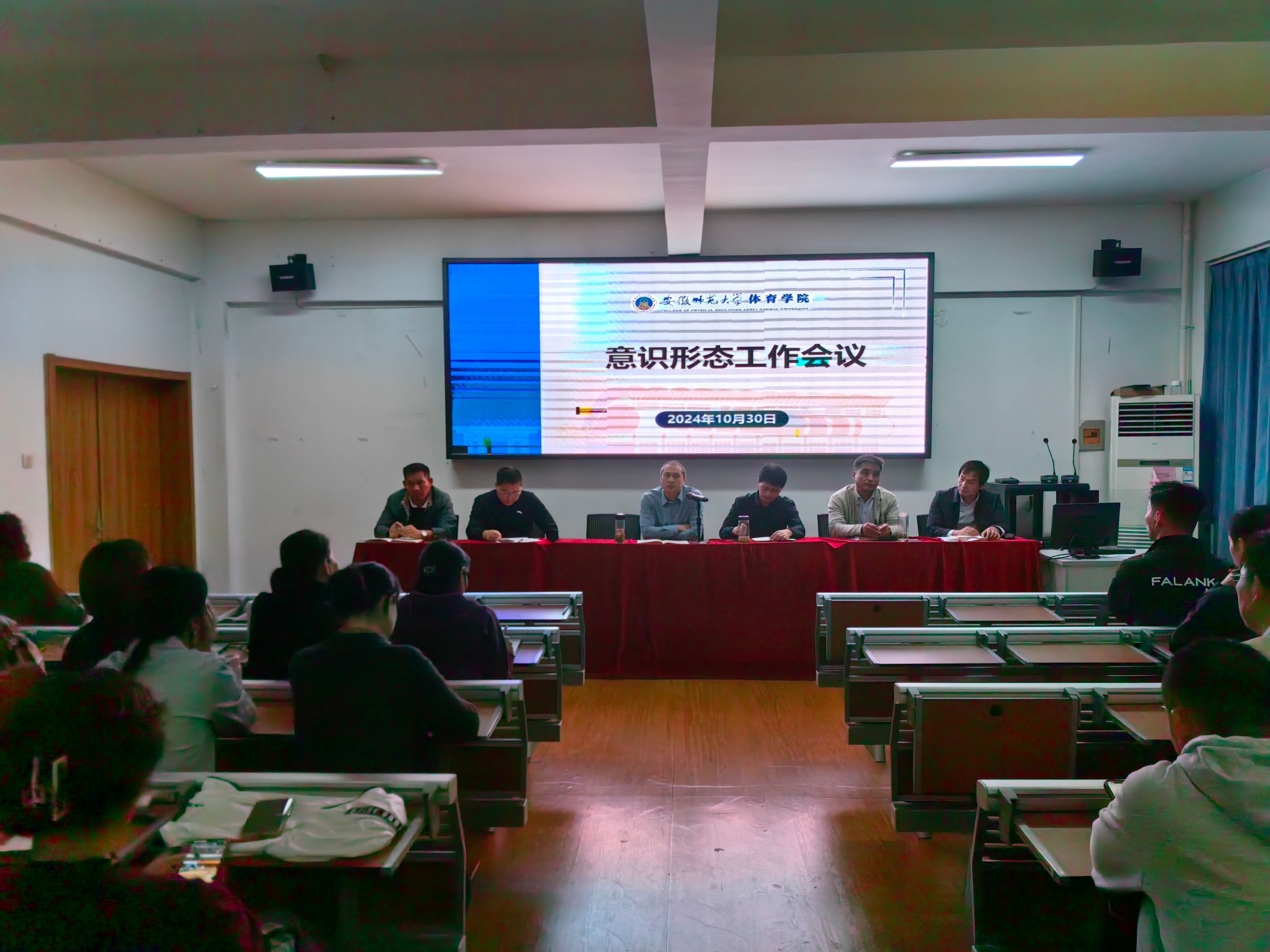 10月30日,英国正版365官方网站在北场多媒体教室召开全体教职工大会,专题学习习近平总书记在安徽考察时的重要讲话精神会议,学院领导班子成员及全体教职工参加大会,会议由公司党委书记黄德春主持。
