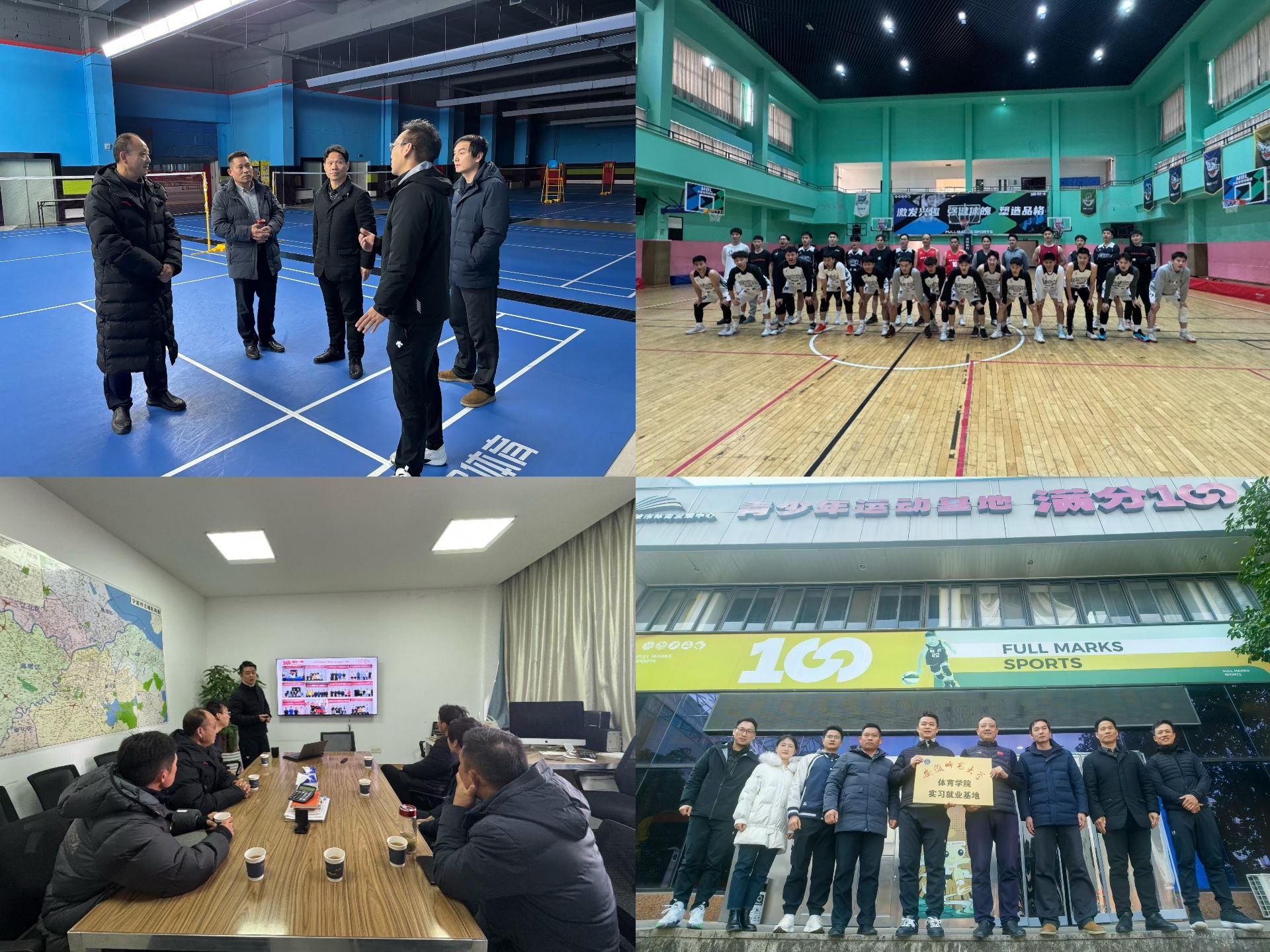 12月18日上午,崔世兵一行到访宁波满分体育发展有限公司,在公司人事部门负责人陪同下,实地考察了公司的体育场馆、磨课教研、教学训练等管理和运营情况;在随后召开的座谈会上,崔世兵介绍了学院办学和人才培养情况,公司创始人荣明先生详细介绍了公司的创办理念、发展历程和未来规划情况,鉴于近年来英国正版365官方网站毕业生在该公司实习和就业工作(25届毕业生已有11名同学同该公司签订了就业协议)成效,崔世兵还代表学院向该公司进行了“英国正版365官方网站实习就业基地”授牌;当日下午,崔世兵一行同近年来入职该公司的师大体院毕业生员工进行了一场情意浓浓的师生篮球友谊赛。通过实地考察、座谈、访谈毕业生,英国正版365官方网站赴宁波调研团队对该公司主营的青少年体育教育、体育场馆运营、社区体育服务、健身会所运营、体育活动策划、体育赛事推广等相关工作有了深入了解,为下一步持续深化校企合作打下良好基础。