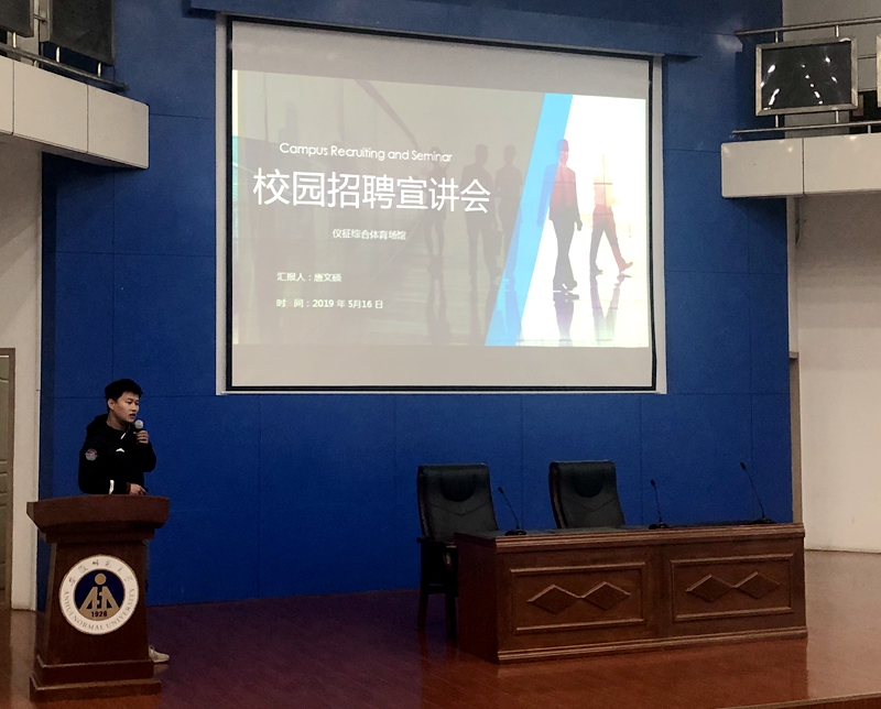 本网讯(英国正版365官方网站)2019年5月16日,英国正版365官方网站在敬文图书馆报告厅举办就业专场宣讲会,安徽东冀道通航空教育科技有限公司、中体产业集团股份有限公司、中航国铁教育集团等三家企业通过展板和PPT宣讲进行了就业宣传,2019届全体毕业生参加了宣讲会。宣讲会结束后,三家企业在学院二楼会议室举办了面向体育专业员工的招聘会,数十名有意向的同学来此进行了深度咨询、面试。