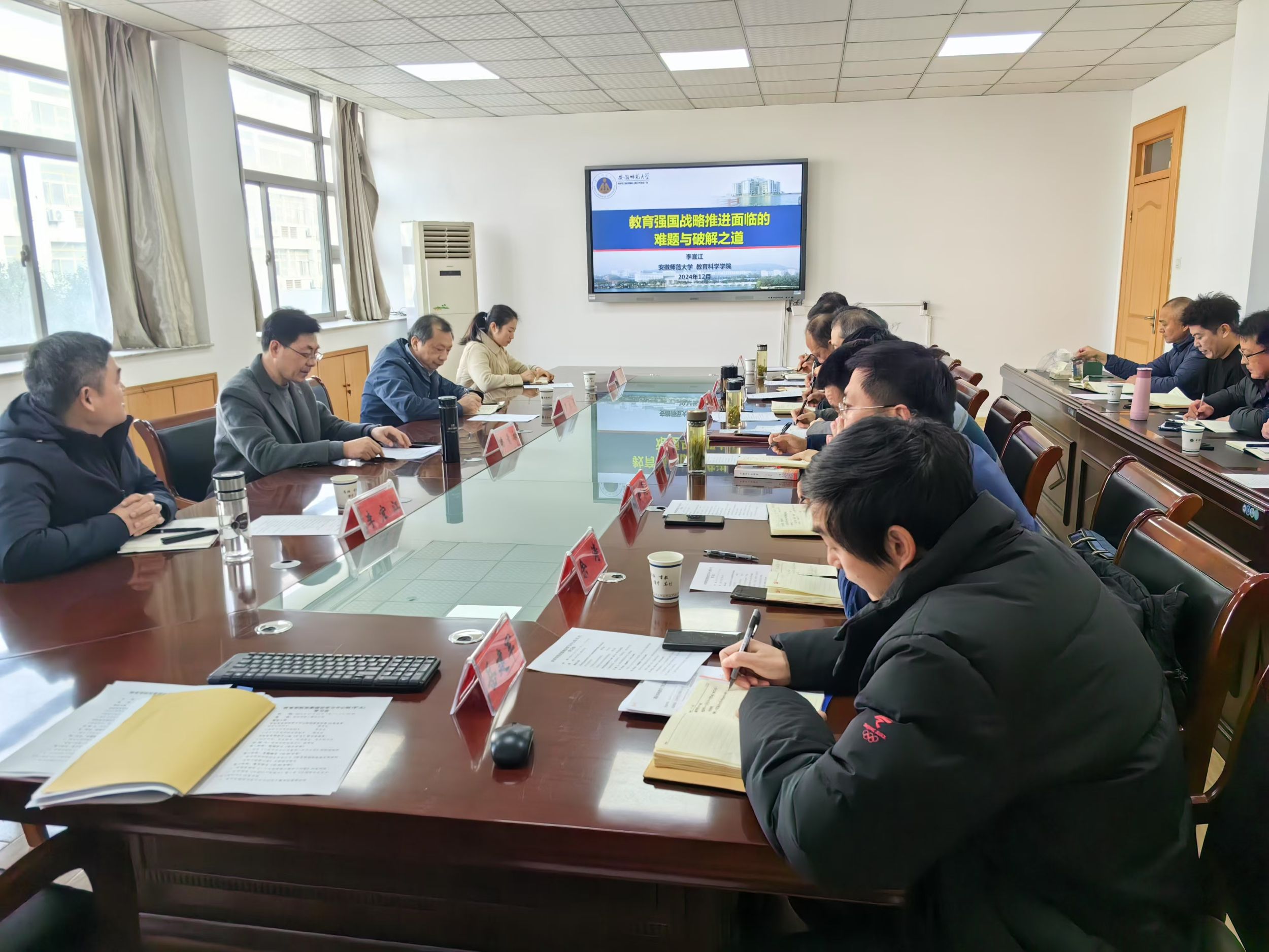 集中学习阶段,与会人员集体观看《习近平总书记考察澳门科技大学》的新闻视频,黄德春领学了《中国共产党章程》,经理金涛领学了《中国共产党简史》内容节选,副经理高守东领学了习近平总书记关于教育的重要论述。专题辅导阶段,邀请教育科学学院经理李宜江作《教育强国战略推进面临的难题与破解之道》专题辅导,报告围绕教育强国战略推进面临的难题、面临难题的症结分析、面临难题的破解之道等三个方面进行专题辅导。