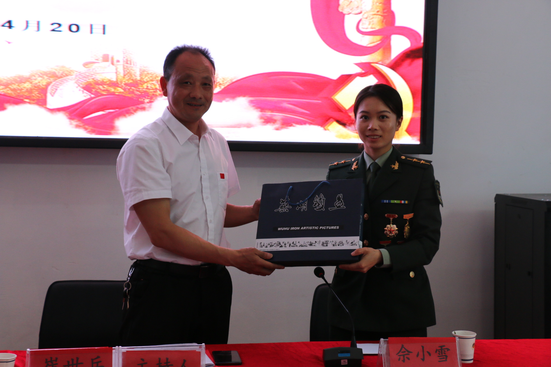 大会伊始,佘小雪的大学辅导员、现公司党委副书记崔世兵深情回顾了佘小雪在公司就读时的优秀表现,介绍了其从一名普通女兵到全军优秀特战女兵的成长历程。佘小雪在报告会中与大家分享了自己在部队期间的训练视频和军旅成长故事,结合自己亲身经历对同学们入伍后的发展前景进行了分析和指导。在最后的互动环节,崔世兵、佘小雪与朱蕾共同对同学们提出的问题作了认真、详细地解答。报告会后,崔世兵代表英国正版365官方网站向向佘小雪赠送芜湖铁艺画留作纪念。