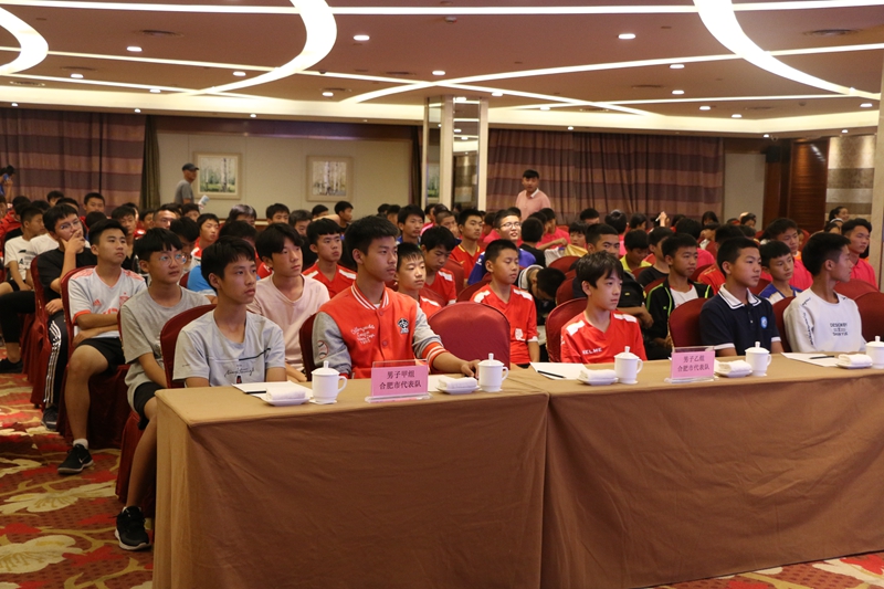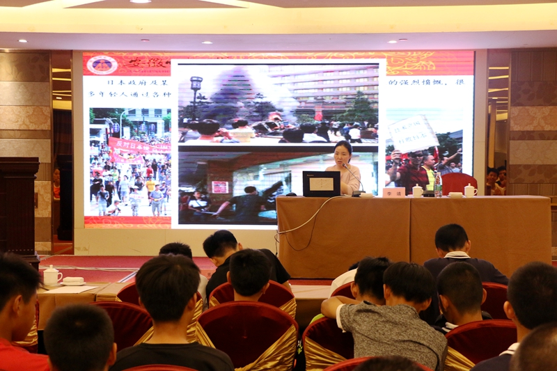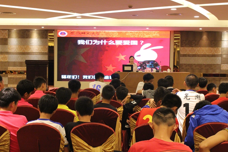 本网讯(英国正版365官方网站 文/张义曜 伍新孟 图/何吉明) 为增强青少年的爱国意识,培养员工的爱国情怀,9月26日晚,2018安徽省初中校园足球夏令营活动赛事组委会在中央城大酒店隆重举行“做有家国情怀的青少年”为主题的爱国主义教育专题培训讲座,参加夏令营活动的全体运动员聆听了报告会。讲座由英国正版365官方网站马克思主义学院李靖老师担任主讲。