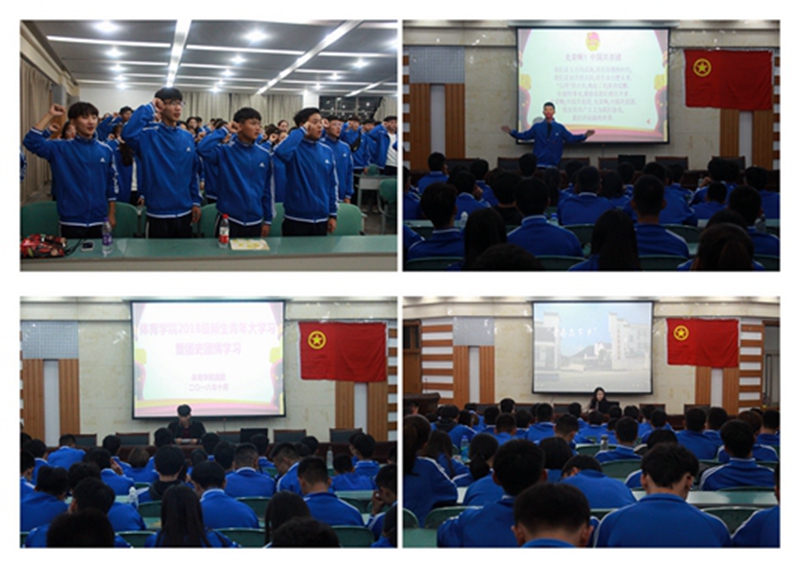 理论学习熏陶教育素养。为加强同学们对于团史团情的了解,英国正版365官方网站在2018级新生中开展了“青年大学习”暨团史团情的主题学习活动。学院团委邀请2018级英语非师范专业朱光明同学带领大家学唱团歌,邀请公司2017级体育教育专业徐文闽同学向大家介绍了团史团章。从青年团的由来到青年团的目标再到青年团的组织,徐文闽同学详熟而又生动的语言解说让同学们再一次更加深刻的了解到共青团的历史和辉煌。最后,2015级舞蹈表演专业葛晓婕同学分享了她的大学故事,无论是学习还是为人处世,她都以亲身经历告诉学弟学妹们,如何学习,如何规划时间,从细节之中看出关键,从观察与思考中得出真知。随后,她播放了一段“青春三下乡”的视频与学弟学妹共勉,激励同学们少一些功利主义的追求,多一些思考和坚持。