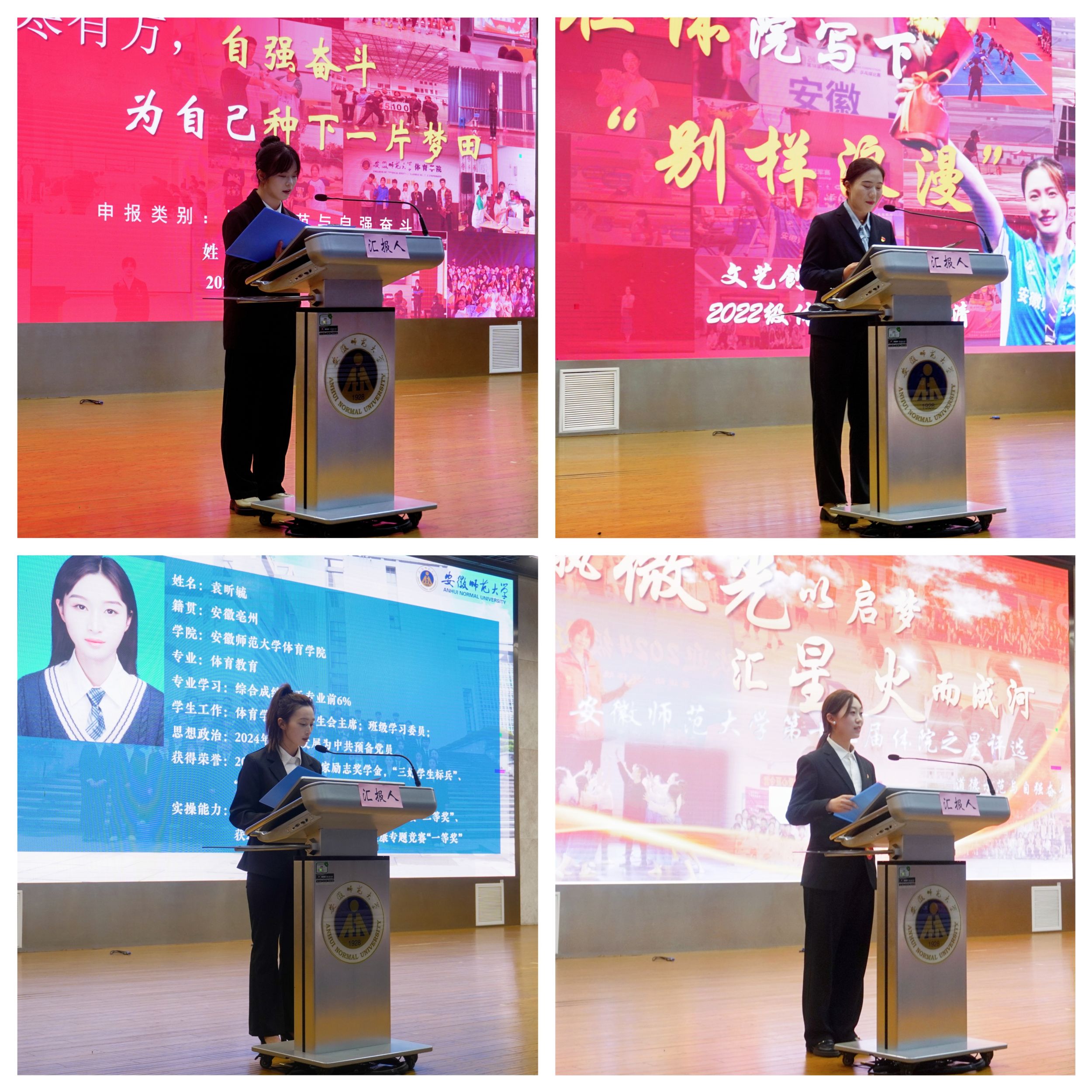 经过班级推荐和院团委初审,遴选出16名综合素质优秀的同学参加“体院之星”现场汇报。汇报人分别围绕思想、学习、生活和志愿服务、朋辈护航等方面的优秀表现进行了精彩展示。
