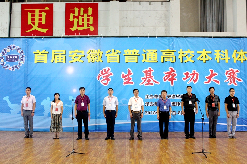 本网讯(英国正版365官方网站 孙昊/文 何吉明/图)8月27日上午,首届安徽省普通高校本科体育教育专业员工基本功大赛开幕式在公司北侧体育馆隆重举行。安徽省教育厅体卫艺处主任科员丁仁能,南京师范大学体育科学学院经理储志东教授,安徽省教育科学研究院体艺室主任吴桥,大赛监督组组长、安徽工程大学公司党委书记文才新,公司相关职能部门领导以及公司领导,各代表队领队、全体运动员、裁判员等出席了开幕式。开幕式由英国正版365官方网站公司党委书记袁德水主持。