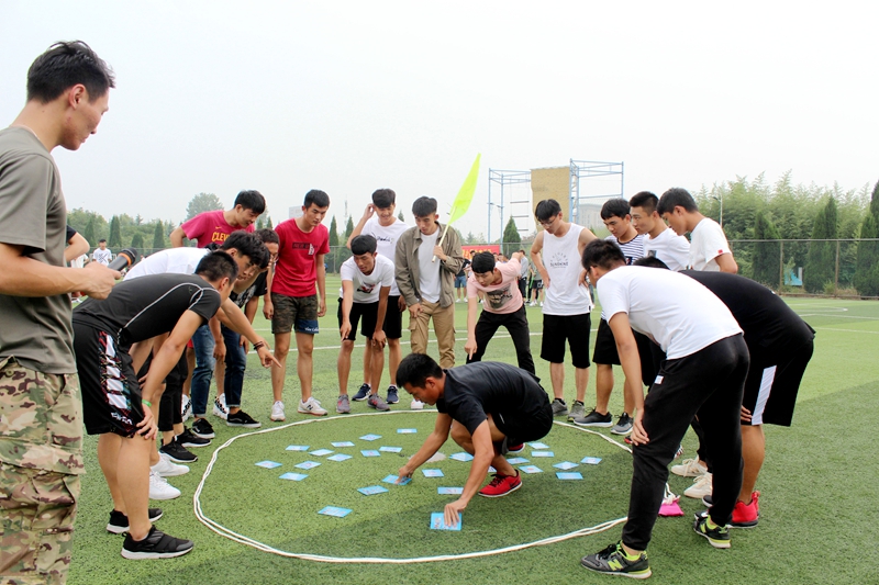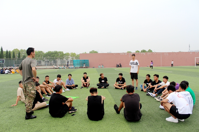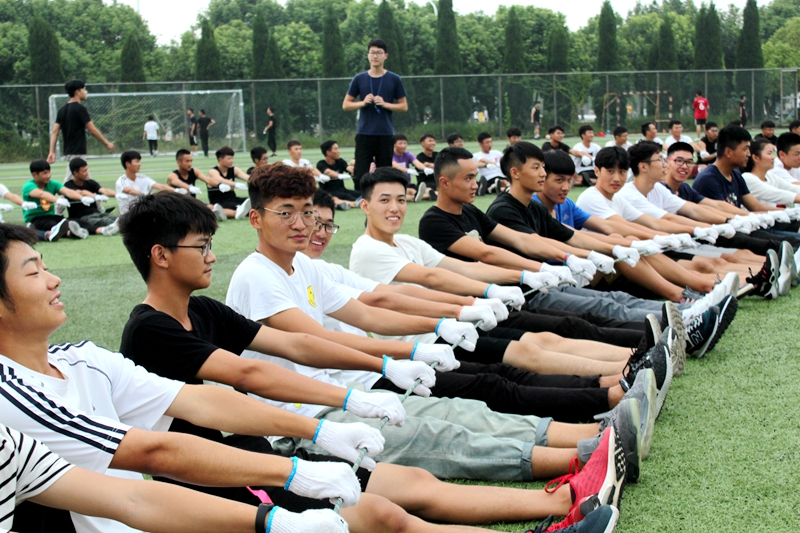 活动开始后,全体2018级新生被分成两队分别前往华津户外营地和南区足球场开展活动。两位主训将各自将队伍再次进行随机分组。各小组选出队长,队长带领下在规定时间内完成队名、队形、队歌等要求,向其他队伍展示自己的风采。大家齐心协力在队伍中出谋划策,共同描绘队伍的蓝图。随后主训又带领大家进行极速60秒、动力绳圈等活动。在开展极速60秒活动时,一次次的失败使大家开始反思。同学们开始密切合作,在欢声笑语中寻找属于自己的位置,一次次突破极限,一步步走向成功。同学们从陌生走向熟悉,大家分工明确,通力合作,最终拥抱成功。而在最后的动力绳圈中,坚持不懈、互帮互助、敢于承担成为永恒的基调,游戏刚刚开始同学们感觉十分开心,但是在经历了一段时间的重复运动后,手掌与绳子接触的地方开始疼痛,手臂逐渐酸麻,体力开始不支。有些同学开始主动地为旁边的朋友分担,大家一起用力,共同用力。最终痛苦、劳累并没有阻挡他们,他们成功挑战近2000次的新成绩。