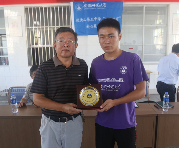 19日上午8时,赴黄山三中“阳光体育”爱心夏令营活动开营仪式在黄山三中会议室如期举行。首先,支教者代表陶娜发言,她承诺会以高度的热情,抱着服务的心态,尽快适应环境,投入实践,学以致用。之后,陈董事长赞扬了支教队不惧艰苦来支教的精神,对支教队赴黄山三中、仙源小学进行支教活动的行为表示肯定和感谢,他衷心祝愿本次支教圆满成功。继而,“阳光体育”支教队全体队员宣誓,支教队队员赵杨领誓。最后,在英国正版365官方网站建校90年之际,由队长杨文杰代表支教团队向陈董事长赠送师大周年纪念品,并亲切留影合念。饱含杨文杰队长深切情谊的赠礼仪式圆满结束之后,支教课堂拉开帷幕。