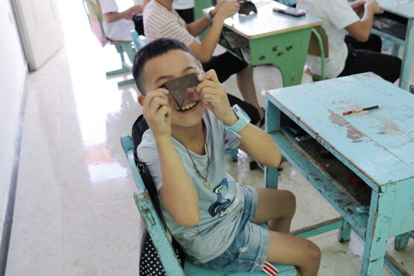 卡纸折成一个简易的望远镜,刘雨仪举起这个”望远镜“眺望着窗外。一番询问,志愿者得知刘雨仪上学需要走两个多小时的山路,去过最远的地方是当地的镇上,她对外界所有的认知来源于家里那台台式有线电视。“一到下雨天家里就会停电,到了晚上我没有办法写作业,只有等人来修理电路。我想去一个可以随时开灯关灯,不用考虑电费,不用担心停电的地方。我想走出大山,我想用望远镜看看外面的世界。“刘雨仪语气平淡的谈着自己的梦想,可她的目光里却流露着最热切的企望和最深的期盼。