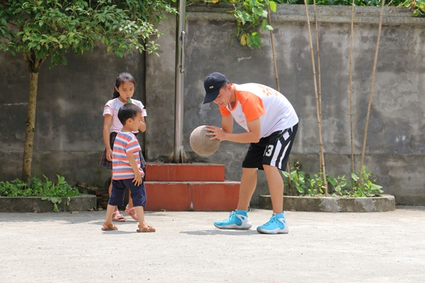 二人对战八人,谁胜谁负?篮球课上,志愿者李泽渔在简单介绍篮球知识后,用一个个动作加深孩子们的理解。随后他将班级里同学分为两组进行篮球比赛,其中志愿者与班级里最高的员工赵马仪为一队与另外八名同学进行比赛。身高的优势让赵马仪与志愿者占了较大的优势,任孩子们跳起来、抱住大腿还是团团围住,志愿者与赵马仪总能轻而易举的让篮球飞跃头顶落进篮筐。“老师,我最喜欢篮球了,我以后要成为中国打篮球最厉害的那个人!”赵马仪骄傲的昂起头说着,豆大的汗珠从他额头滚落,他喘着气靠在柱子上和志愿者聊着篮球。“每次不开心的时候我就一个人练习投篮,不停的投篮,不停的跳跃奔跑追逐,直到大汗淋漓,就像是把不开心的事情都流出体内一样。”赵马仪笑着说完后,挥挥手又跑进了球场,那篮球“哐”的一声似乎是在回应他的热爱。