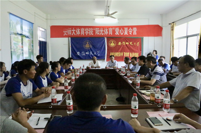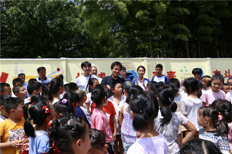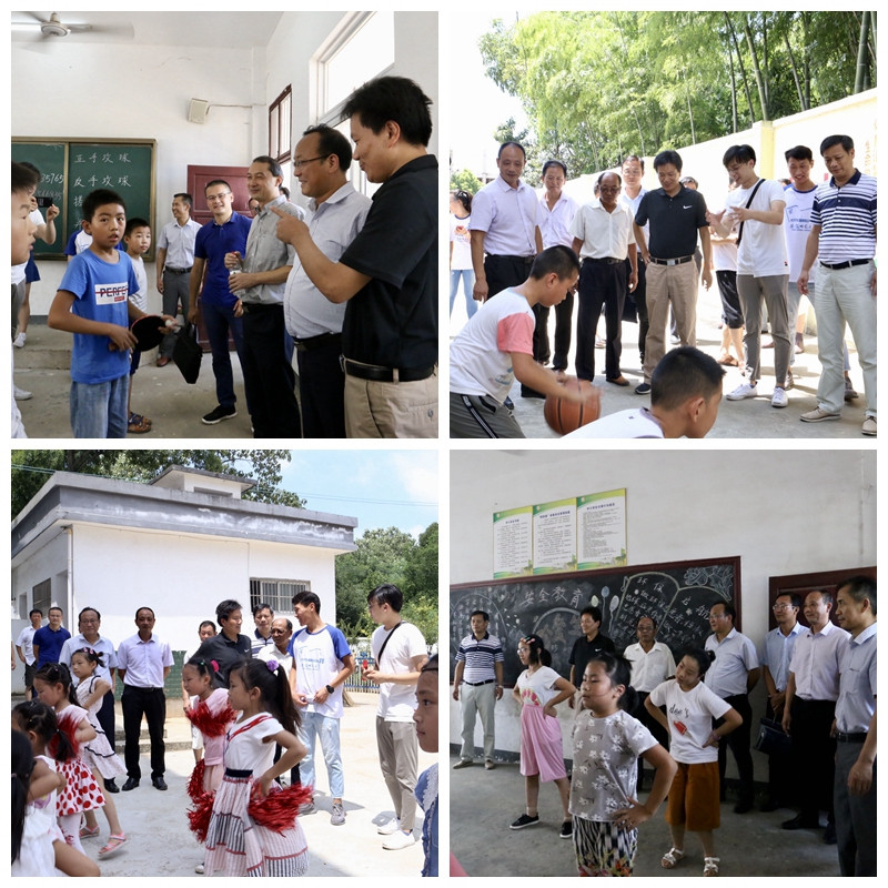 7月22日上午,英国正版365官方网站党委常委、副董事长毕明福在学校办公室副主任张顺、公司党委书记袁德水、公司党委副书记崔世兵等人的陪同下,冒着酷暑来到安庆市宿松县三德村光荣小学,亲切慰问英国正版365官方网站赴宿松县三德村“阳光体育”爱心夏令营暑期社会实践团队师生。宿松县教育局副局长李文斌、凉亭镇副镇长刘青平以及三德村第一书记、公司驻村扶贫工作队队长黄德春、副队长桂晓骏、扶贫专干付勇等同志热情接待毕明福一行。