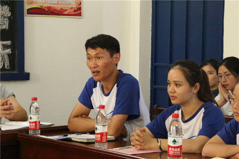参观完教学班级授课后,毕明福与志愿者们进行了座谈。实践团队队长戴晓禾代表团队汇报了实践活动开展情况,全体实践队员分别汇报了实践心得体会,同学们质朴的语言充满着对社会实践、对支教事业、对扶贫事业的真情实感和对实现中国梦的坚定信念。黄德春以公司帮扶三德村的工作力度、宿松县目前脱贫攻坚的深度及公司教育扶贫的温度等三个维度充分肯定了此次暑期社会实践的意义和价值。毕明福认真听取了实践团队的汇报并发表讲话,对暑期社会实践师生表示真挚慰问,肯定了社会实践的成果,并向三德村和光荣小学对实践师生的关怀和帮助表示感谢。