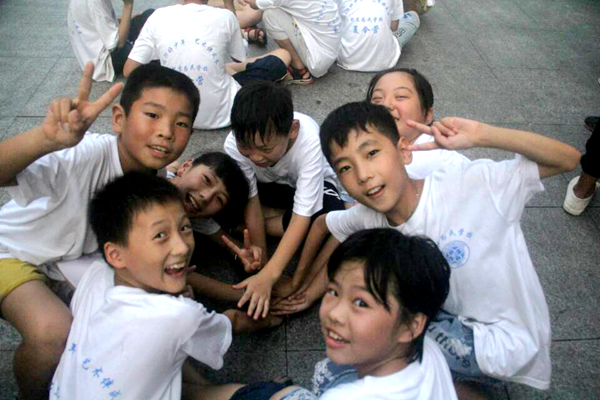 第二个环节是团建,即在志愿者的组织下,选出一个队长、一个副队长,并将队名、口号、队徽和队歌用马克笔写在小旗子上。选队长时,很多同学们都很勇敢地举起了小手毛遂自荐。最后的队旗展示阶段,每一队的队旗也都很有创意。第三个环节是打拍子游戏,即一边喊口号一边打拍子,可以锻炼同学们的反应能力和检查团队配合的默契程度。