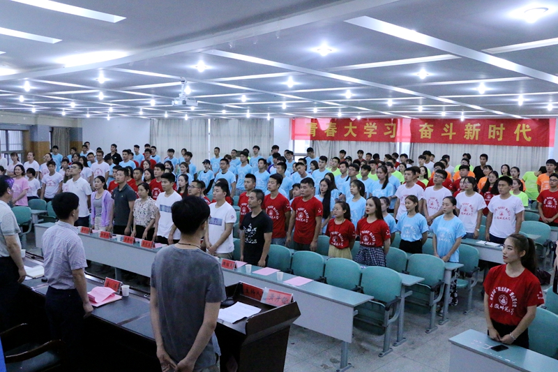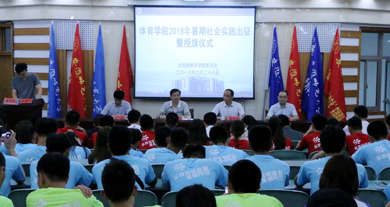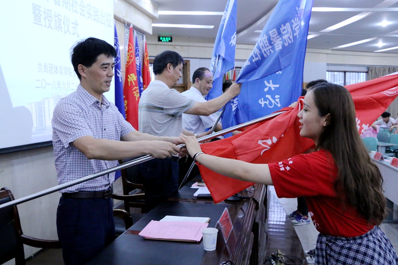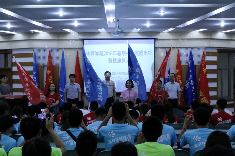 一段精心剪辑的暑期社会实践历程视频带领全体同学共同回顾了公司暑期社会实践十余年的开展情况,让我们感受到了英国正版365官方网站对于支教这一志愿行动的执着追求。在激情高昂的校歌声后,副经理金涛宣读了《关于成立英国正版365官方网站2018年暑期社会实践校级、院级重点团队的通知》。2016级体育教育专业徐金金带领全体暑期社会实践的志愿者们进行庄重的宣誓。随后,领导老师分别向校级、院级的支教团队进行授旗仪式,一面小小的旗帜,包含着支教团队们的爱心以及高昂的斗志,引领着大家将快乐和希望传递给实践学校的孩子们。