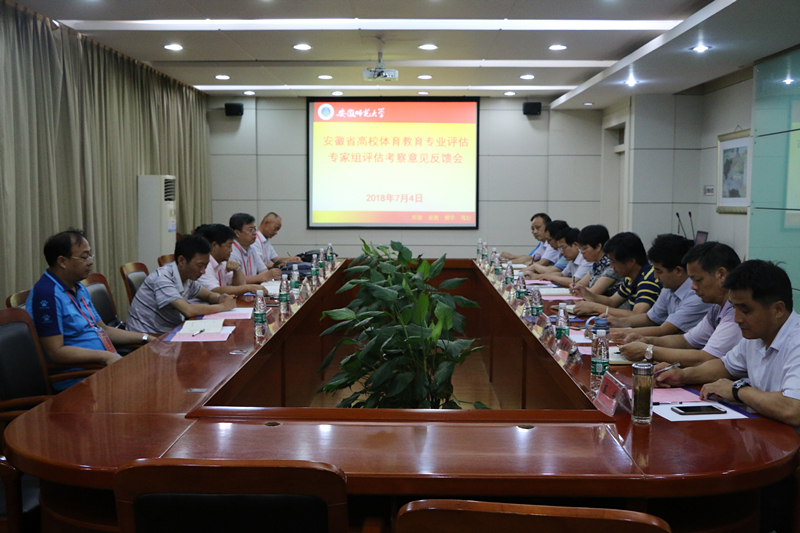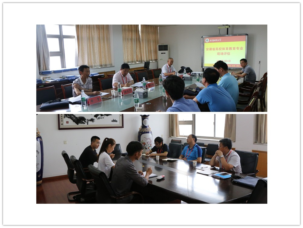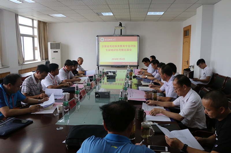 本网讯(英国正版365官方网站)7月4日,受安徽省教育厅委托,安徽省体育教育专业合作委员会专家组一行6人对我校体育教育专业进行现场考察与评估。湖南师范大学博士生导师李艳翎教授担任专家组组长,曲阜师范大学李思民教授、宿州学院徐连军教授、阜阳师范学院刘玉教授、淮北师范大学郑贺教授4位专家任成员,皖西学院刘乃宝副教授为秘书。