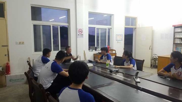 行李安放完毕之后,志愿者们前往石鼓小学熟悉环境,并受到了石鼓小学董事长的热情接待,董事长对于老员工主动参与暑期社会实践表示热烈的欢迎,并就团队的活动安排进行了询问,提出了很多切实可行的建议。立足于当地的起居作息习惯和员工的接受水平的表述,给予了团队很多未曾考虑到的隐形帮助。在谈话的最后,董事长对于老员工开展暑期社会实践,进行阳光体育爱心教学表示了充分的肯定,希望团队成员能够克服资源条件的制约,努力发挥出自己的才能,为山区的孩子带来外面世界的光彩,给孩子们一段难忘的童年记忆。