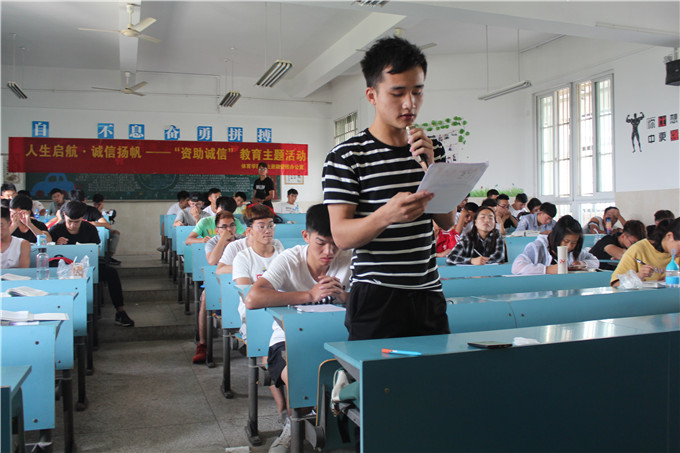 为进一步培养员工的诚信意识,强化诚信教育力度,固化诚信教育成果,学院组织开展了“人生启航 诚信扬帆”为主题的演讲比赛,大家积极阐述观点,17级社会体育指导与管理李爱强同学向大家提出诚信还贷是我们每一个办理生源地助学贷款学子的责任,他引用康德“诚实比一切智谋更好,而且它是智谋的基本条件”的一句名言向大家阐述了诚实的重要性。