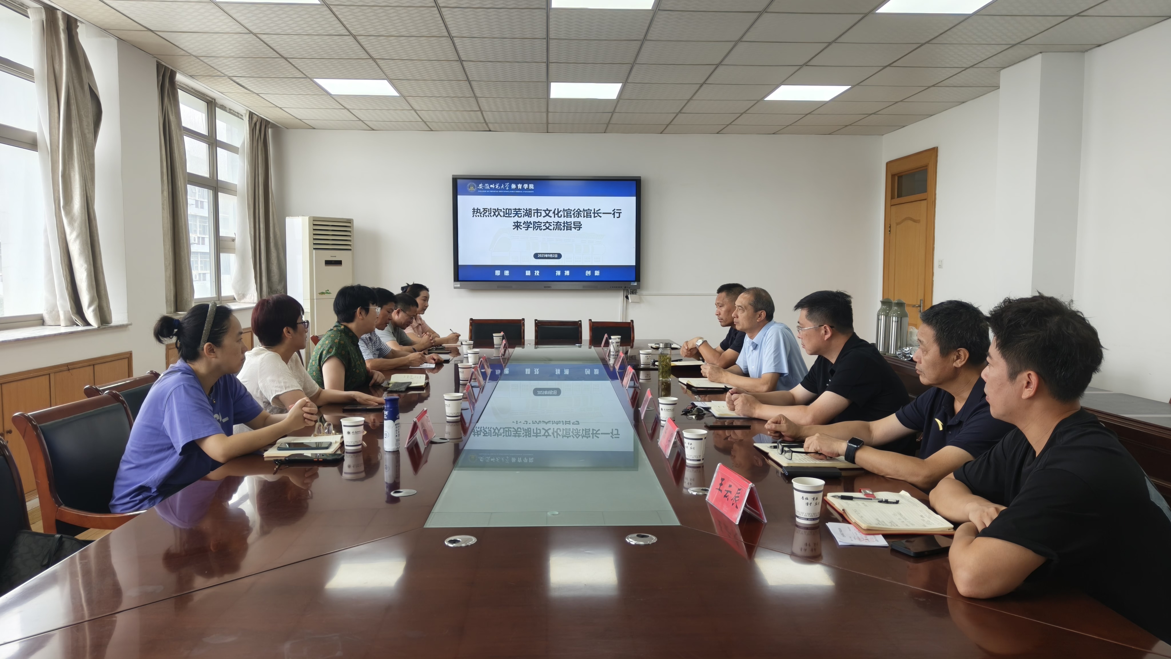 9月2日上午,芜湖市文化馆馆长徐蕾、副馆长唐俊等一行来公司交流。公司党委书记黄德春、副经理余涛、高守东等参加交流会,会议由党委书记黄德春主持。