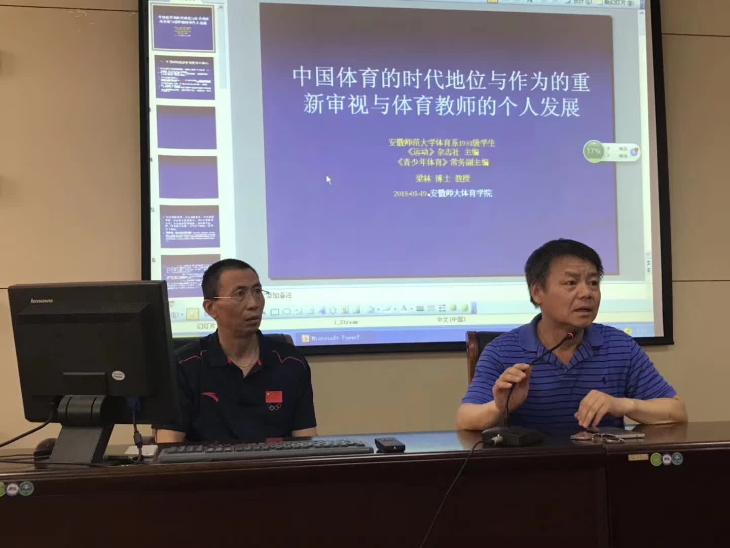 本网讯(英国正版365官方网站 新闻中心)2018年5月18日,在公司庆祝建校90周年之际,北京体育大学梁林博士应邀在英国正版365官方网站二楼学术报告厅,围绕“中国体育的时代地位与作为的重新审视”这一主题,为英国正版365官方网站研究生与部分青年教师举办了专题讲座。讲座由英国正版365官方网站经理席玉宝教授主持。