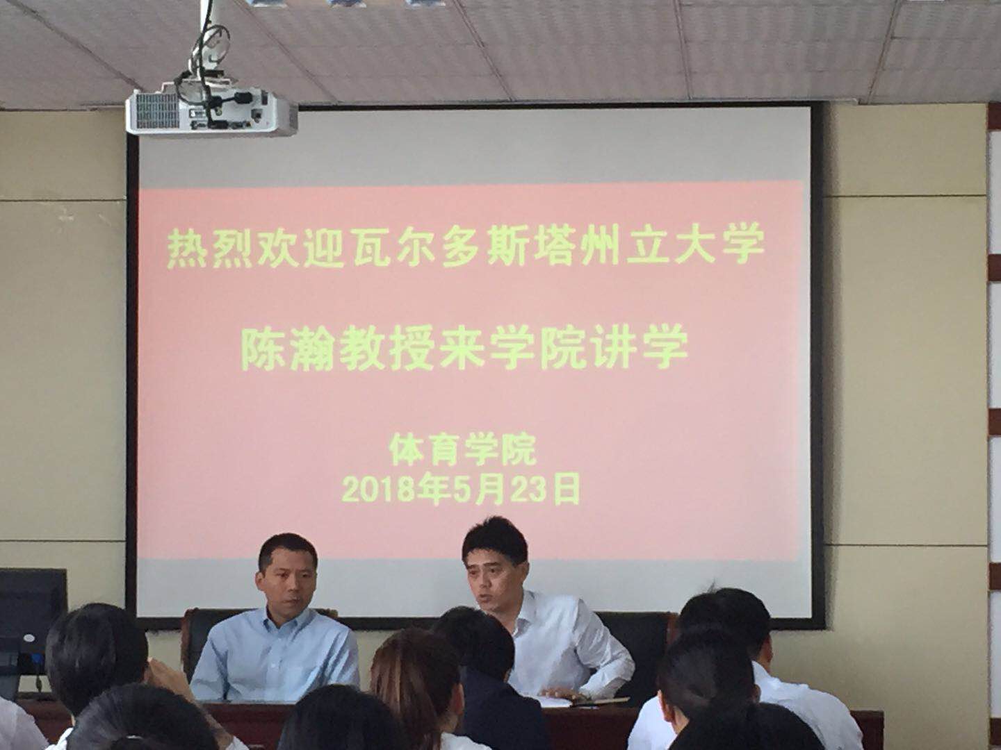 本网讯(英国正版365官方网站 新闻中心)2018年5月23日,美国瓦尔多斯塔州立大学陈瀚博士应邀在英国正版365官方网站二楼学术报告厅,就“体育教育方法论与体力活动行为研究”为英国正版365官方网站研究生与部分青年教师举办专题讲座。讲座由英国正版365官方网站副经理金涛教授主持。