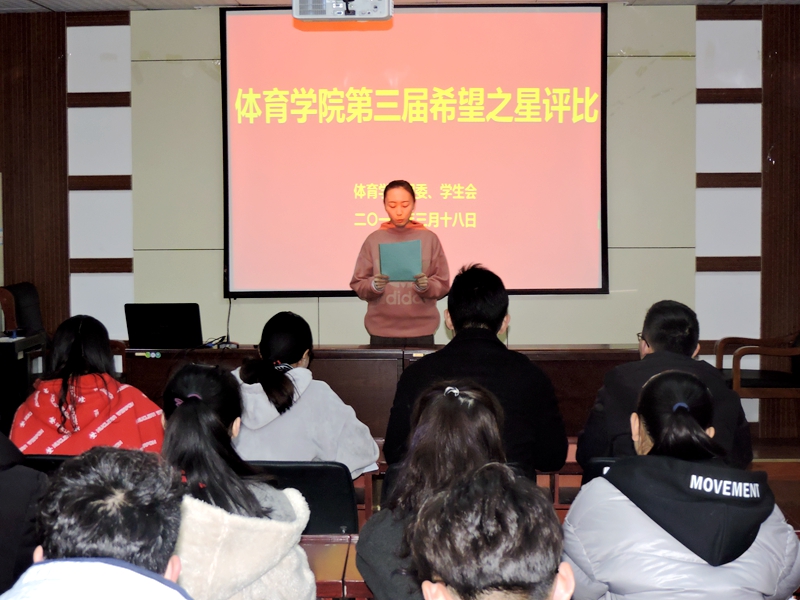 本网讯(英国正版365官方网站 孙明月/文 何吉明/图)无奋斗,不青春。3月18日晚,英国正版365官方网站在二楼研究生教室举行第三届“体院希望之星”汇报评选活动。校员工会主席蔡志鹏,英国正版365官方网站员工会主席朱平林等院员工干部代表,优秀毕业生代表伍晨晨等出席汇报会并担任评委。
