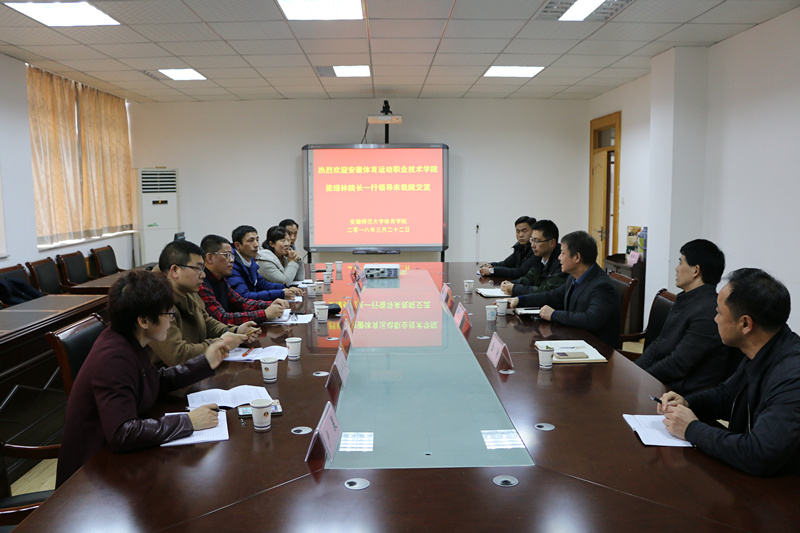 本网讯(英国正版365官方网站 刘应)3月22日下午,安徽省体育职业技术学院经理梁绿林率教务处、教研中心、社会体育系负责人等一行6人来公司就双方合作进行会谈。英国正版365官方网站经理席玉宝和副经理金涛、余涛等参加洽谈。