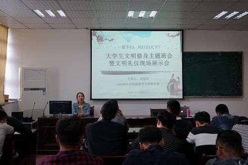 4月10日下午,实习辅导员刘冠琪组织班级全体同学召开“一屋不扫,何以扫天下?”老员工文明修身主题班会,献礼师大九十华诞。会上,刘冠琪首先强调了加强文明修身的重要性,并以师大明德修身“十学会”、文明校园“十不为”的倡议为出发点,向2016级社体学子讲述作为一名老员工,规范自身言行,增强文明习惯,对自己当下和未来发展的重要性。最后,刘冠琪老师呼吁同学们从日常做起,从小事做起,将文明之风浸润班级、公寓、网络、食堂等各个方面,强化文明意识,做文明的体院学子。