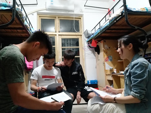文明修身,关键在做。2016级社会体育专业员工在老员工文明修身主题班会教育与观摩现场文明礼仪教学后,发挥自我教育、自我管理、自我服务、自我监督的功能,积极开展寝室文明创建教育活动。实行宿舍卫生打分制,每日一打分,以流动红旗形式表彰文明宿舍;召开寝室民主生活会,以“文明创建,我们要做文明社体人”为议题,实习辅导员刘冠琪全程参与,寝室长主持,开展批评与自我批评,在反思中加强自身文明修身意识,争先创优做文明体院人,献礼师大九十周年。