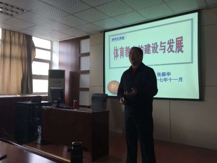 本讯网(英国正版365官方网站 付贤达)2017年11月22日,“体院大讲坛”第九讲由公司硕士研究生导师张振华教授在英国正版365官方网站二楼会议室开讲,主题为“论新世纪体育教育的建设与发展”。讲座由花家涛博士主持,体院部分教师与研究生参加此次学术讲座。