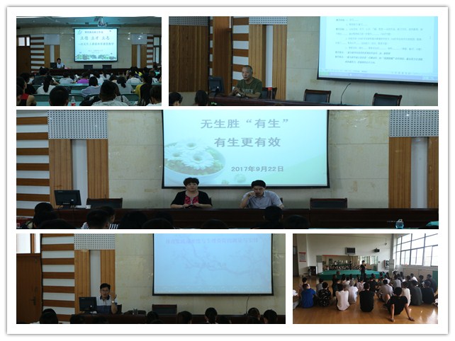 为帮助员工储备充实的理论知识,学院邀请了多位专家为全体实习生安排了一系列的的相关教学课程以及讲座。9月18至20日,吴本亮、郝利玲两位老师对实习生需要掌握的队列队形、口令调动、中员工播操等实践技能方面给实习生们进行培训,老师们就广播操动作的规范性、教学、教学示范面的选择及教师所展现的仪表仪态等做了详细解读与示范,并在音乐伴奏下带领大家复习巩固广播操;18日下午周坤老师给大家讲解《学校体育的练习密度测量》,教会实习生如何在教学中测量员工心率,合理调整练习密度,不断加强教学效果;20日下午马鞍山实验中学高级教师郑世海为实习生带来了《立德、立才、立志——由无生上课谈体育课堂教学》专题讲座,讲座中,还邀请了马鞍山市无生上课获奖青年教师现身说法,展示无生上课技巧,讲座现场掌声雷动;21日下午,张国棣老师围绕教案的撰写和学校体育教学的安全策略两个方面,列举在实际教学中可能会出现的问题,传授了很多实际教学中的小技巧;22日,学院邀请镜湖区体育教研员丁曲琴老师就如何进行无生上课进行了培训,丁老师生动讲述了如何上好无生上课,提醒同学们充实理论知识,并结合个人担任面试考官的经历详细列举了无生上课的环节和技巧。