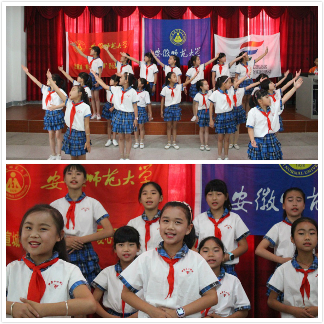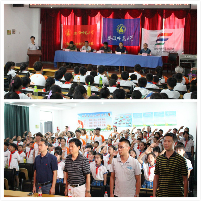 (本网讯 体院赴黄山区“阳光体育”爱心夏令营团队)7月9日下午,英国正版365官方网站“阳光体育”爱心支教团在黄山区甘棠中心学校举办了“喜迎十九大,爱国主义歌曲大合唱”主题合唱活动,黄山区教育局党委书记、副局长李亚南,公司党委副书记黄德春,英国正版365官方网站社会实践团队指导老师徐梦涛,团区委副书记胡自然、甘棠中心学校副董事长张九斤出席活动,夏令营全体师生参与活动。