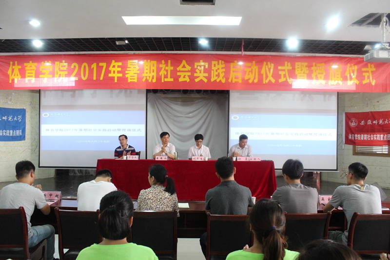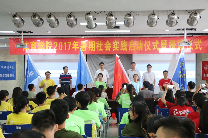 大会在国歌声中拉开序幕。钟晨宣读了《关于成立英国正版365官方网站2017年暑期社会实践校级、院级重点团队的通知》。今年公司共组建了4支校级重点团队,28支院级重点团队,1支研究生支教团队,全院500多名员工投入实践。随后,由2015级体育教育专业朱平林带领全体志愿者庄严宣誓。