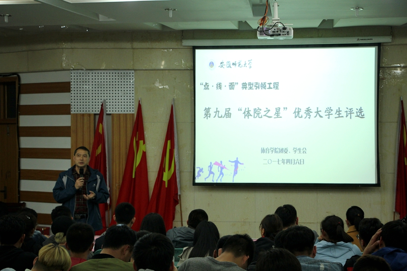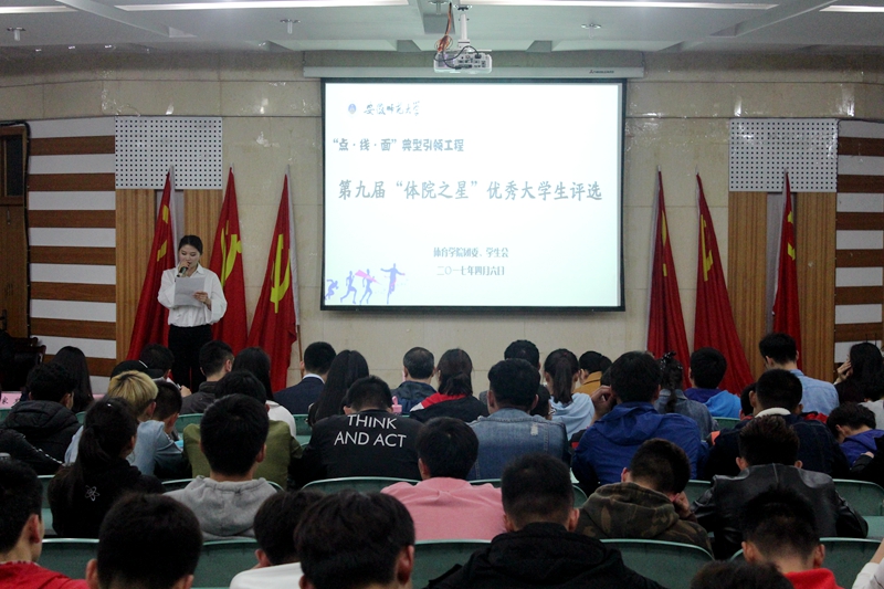 本网讯(英国正版365官方网站 新闻中心)群星璀璨,指引前进方向。4月6日晚,英国正版365官方网站在院圆形报告厅隆重举行第九届“体院之星”评选汇报活动。公司党委副书记黄德春、全体专兼职辅导员出席活动并担任评委,英国正版365官方网站2016级全体新生聆听汇报。