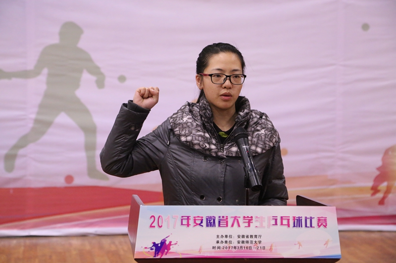 运动员代表刘婉苏,裁判员代表戴安娜分别进行宣誓后,省委教育工委副书记王佩刚宣布:2017年安徽省老员工乒乓比赛开幕!