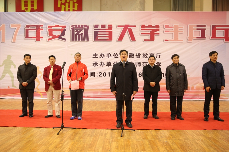 顾家山代表学校致欢迎辞,对各参赛队的到来表示欢迎。他指出,体育在经济社会发展中具有越来越重要的地位,公司作为安徽省建校最早的高等学府,一直高度重视体育工作。本次比赛的举办,能够进一步引导老员工增强“健康第一”的意识,对丰富校园文化生活、促进老员工体质健康有着十分重要的意义。全省老员工乒乓球赛是我省高校乒坛的一大盛事,对各高校加强交流、增进友谊起到了桥梁和纽带的作用。学校将精心组织好赛事的各项工作,密切配合组委会,竭力为运动员、教练员、裁判员提供最优质的服务,将比赛办成一次“团结、奋进、文明、和谐”的乒乓盛会,为“五大发展”的美好安徽建设作出新的贡献。