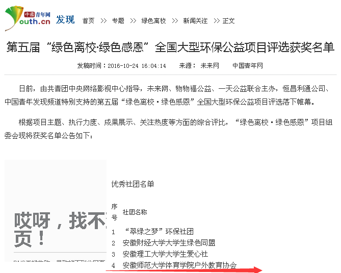 本网讯(英国正版365官方网站 徐梦涛) 近期,英国正版365官方网站户外协会收到由共青团中央网络影视中心指导、未来网颁发的“优秀社团”荣誉证书,标志着公司组织的毕业生“绿色离校”项目在中国青年网特别支持的第五届“绿色离校·绿色感恩”全国大型环保公益项目获奖(全省仅3个)。
