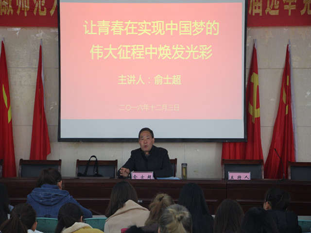 本网讯(英国正版365官方网站 孙昊)实现中国梦,青年正当时。12月3日下午,校关工委报告团俞士超老师应邀为英国正版365官方网站2016级全体新生做“让青春在实现中国梦的伟大征途中焕发光彩”专题报告会。报告会由2016级新生辅导员陶绍晨主持。