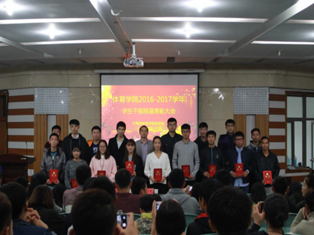 本网讯(英国正版365官方网站 文/葛晓婕 图/包蕾)10月27日晚,2016-2017学年员工干部换届表彰大会在院圆形报告厅隆重举行。公司党委副书记黄德春、团委书记朱凯迪,大艺团指导教师王云辰、社团指导教师陶邵晨、学院全体专兼职辅导员及新老两届员工干部参加了大会。