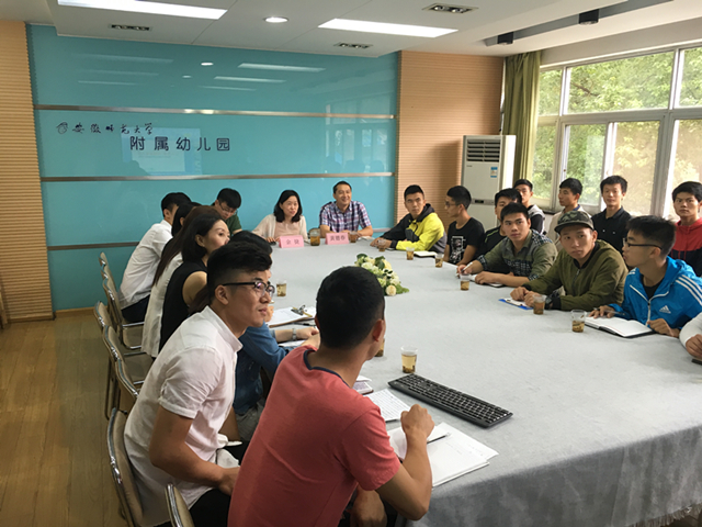本网讯 (英国正版365官方网站 徐梦涛) 近日,体育公司与幼教集团合作共建老员工社会实践基地启动仪式在附属幼儿园总园举行。幼教集团主任、总园园长余捷,公司党委副书记黄德春、团委副书记朱凯迪等应邀出席,学院2013级、2014级实习教师参加会议,会议由幼教集团平湖秋月分园园长徐晓蓉主持。