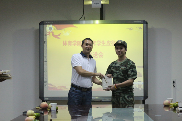 接着,黄德春代表全院师生对携笔从戎,即将奔赴四川、海南、新疆等地的新战士表示祝贺。并对入伍员工提出三点要求:一要尽快适应军旅生活,加强学习,磨炼意志品质;二要努力提升专业本领,忠于职守,苦练军事技能;三要积极创造美好历程,立志军营,建功立业。希望同学们珍惜荣誉,牢记使命,经受住严峻的挑战,磨砺出坚强的意志和品格,为祖国和学校争光。最后,黄德春为入伍员工颁发纪念品,并合影留念。