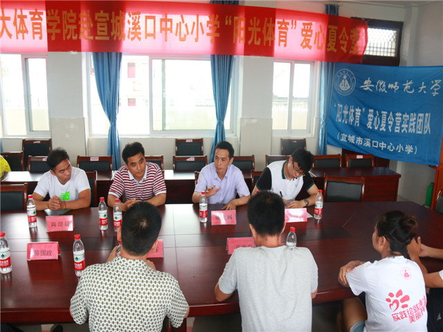戴兆国一行在到达后马不停蹄地观摩了“阳光体育”爱心夏令营教学展示活动,并详细勘察了队员们的食宿环境。随后,一行与当地校方、全体志愿者进行了亲切的座谈交流。