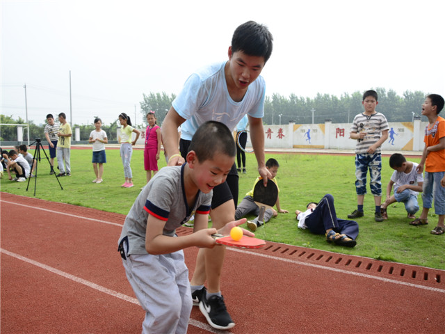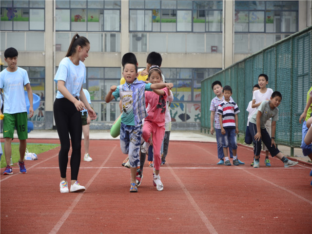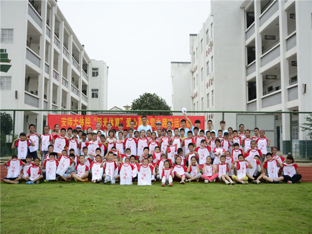 连续多天的阴雨天气终于趋向晴朗!夏日的阳光撒向铭传的每一个角落,拂去了阴雨天的阴霾。在这样的好天气里,7月11日上午九点,安师大英国正版365官方网站赴合肥市肥西县铭传乡中心学校“阳光体育”爱心夏令营团队为孩子们开展了一场趣味运动会,让阳光体育充满校园。
