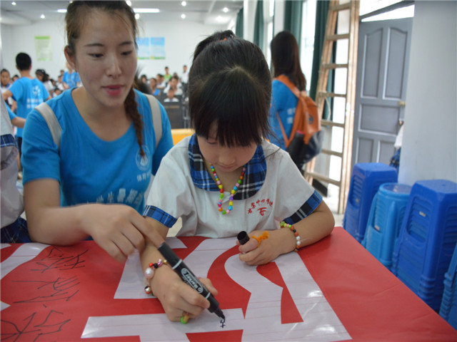 在了解了如何在洪水中自救的知识后,团队队长唐增阳给他们演示了遇到有人溺水时如何救人。在唐队长示范按压胸腔与人工呼吸的基本动作之后,孩子们积极地跟在后面学习这些动作,这样他们对救人的步骤都有了初步的了解。在确保自身安全的前提下去帮助他人,这也是他们需要掌握的必要知识。我们相信他们在这次讲座之后会懂得更多救助他人的知识,在生活中遇到紧急情况也能够冷静沉着,机智应对!