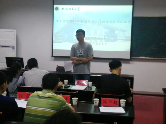 今年体院暑期社会实践团队共有38支,进过与选拔后,27支队伍胜出参加学院的汇报会。每支队伍通过ppt向评委老师们展示了团队的活动主题、实践地点、团队成员、实践内容以及预期取得成果等方面的内容。在汇报展示环节,各队伍围绕着“阳光体育”主题思想,结合实践基地的实际情况,关注当地的教育发展,把实践活动深入到基层,争取把实践活动做得更出色、更有意义。汇报结束后,院团委书记朱凯迪老师作了总结讲话,他对每位前来汇报的同学都给予了细致的点评,并表示体院“阳光体育”暑期社会实践活动已经走过了十个年头,并表示暑期社会对个人的锻炼是无法通过别的方式获得的,最后他说道,英国正版365官方网站“阳光体育”暑期社会实践活动已经走过了十个年头,希望今年的各个团队在实践过程中通过自己的努力,能够在实践中做贡献、长才干。