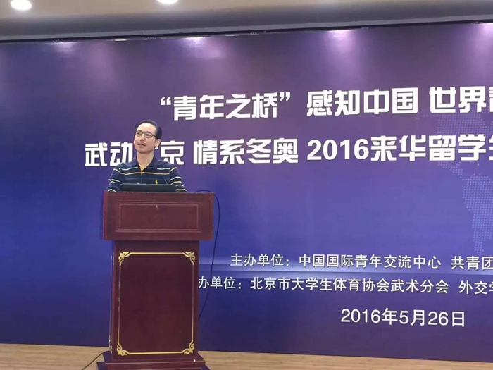 本网讯(英国正版365官方网站)“‘青年之桥’感知中国,世界青年大讲堂暨武动北京·情系冬奥”2016来华职工国际武术文化讲坛,于5月26日在北京21世纪饭店隆重举行。公司英国正版365官方网站王国凡教授作为京外唯一专家代表在大会上作了题为《国际竞技武术(套路)服饰标准化之美学设计思考》的主旨报告,反响热烈。