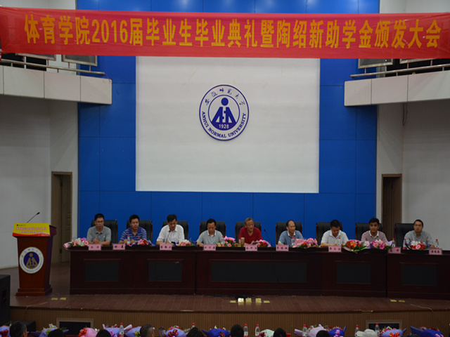 本网讯(英国正版365官方网站 唐增阳 朱港晨中)6月30日,英国正版365官方网站在敬文图书馆报告厅隆重举行2016届本科生毕业典礼暨陶绍新助学金颁发大会。安徽省马鞍山精诚置业有限公司总经理谷开宝、校教育基金会秘书长方百盈、校教育基金会爱心项目顾问贡植斌,公司党政领导班子成员,各专业负责人、部分教师代表,全体辅导员、2016届全体本科毕业生以及陶绍新助学金受助员工齐聚一堂共享师生情,共话新征程。典礼由公司党委书记袁德水主持。