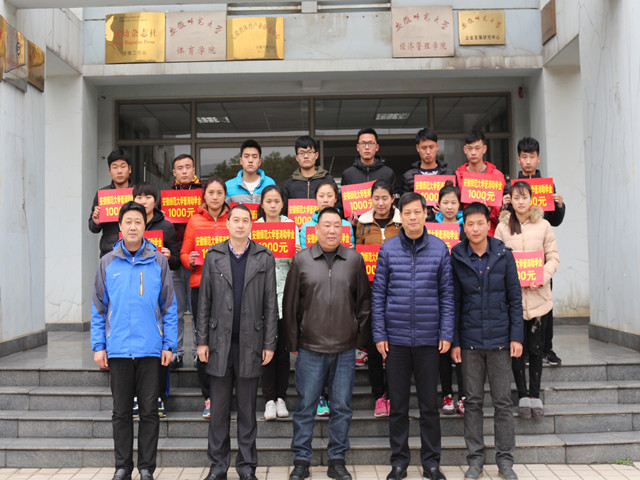 仪式上,副书记黄德春首先宣读了颁发决定,晋涛先生向本学年受助的15名同学颁发助学金并鼓励同学们好好学习,常怀感恩之心。苏悦同学代表全体受助员工对晋涛先生表达了深切的感恩之情,并表示日后会用自己的实际行动来回报学校和社会。