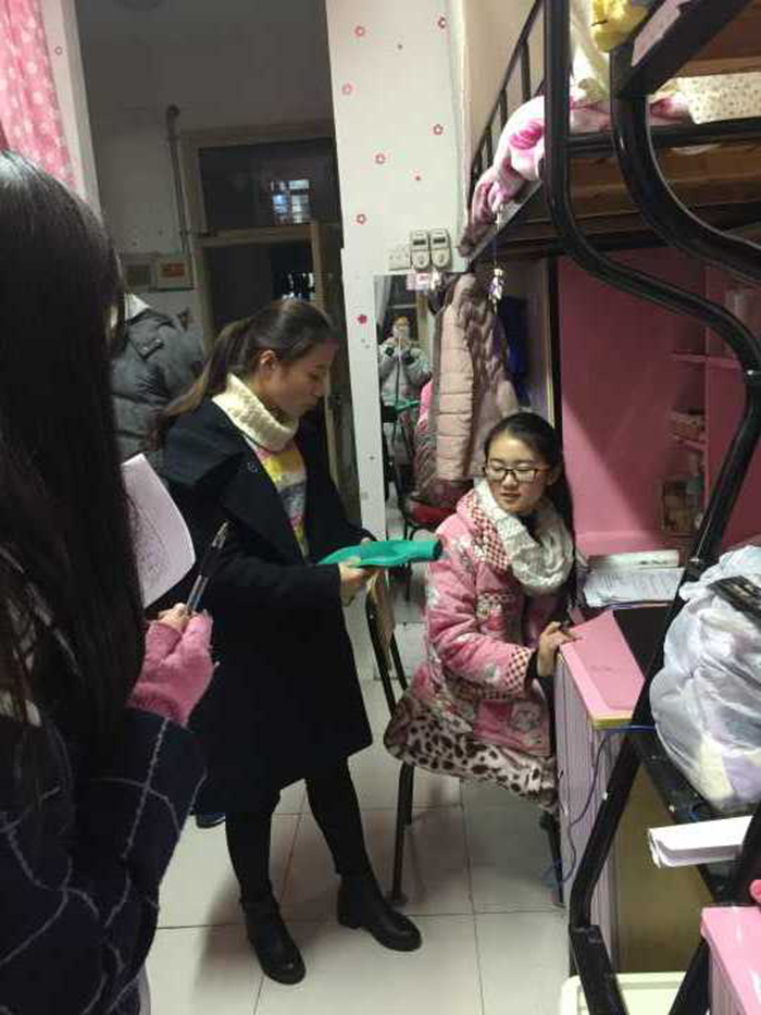 随后,辅导员张迪老师深入班级员工宿舍,强调冬季生活用品的安全问题,以及针对违规电器,进行再次排查。同学们均表示自己受到了启发和教育,承诺自己将会保证宿舍安全,文明用电。