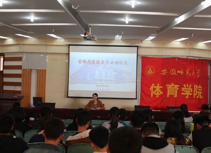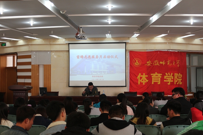 本网讯(英国正版365官方网站 谢燕南)只做平凡事,皆成巨丽珍。为弘扬雷锋精神,提高志愿者的服务意识,英国正版365官方网站于3月2日中午在院圆形报告厅举行了雷锋志愿者服务月启动仪式。公司第五届研究生支教团成员朱克习、余梦雅、赵发应邀出席了本次仪式,体院团学成员、各个班级的班委会全体成员参加仪式。